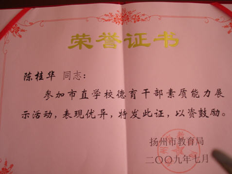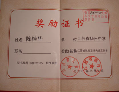 现任江苏省扬州中学学工处副主任,中学语文高级教师。先后被评为扬州市中青年教学骨干、扬州市劳模、江苏省教育系统先进工作者。