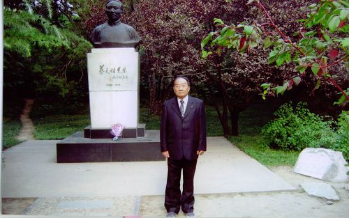 17,2005年10月 在北京大学蔡元培铜像前留影